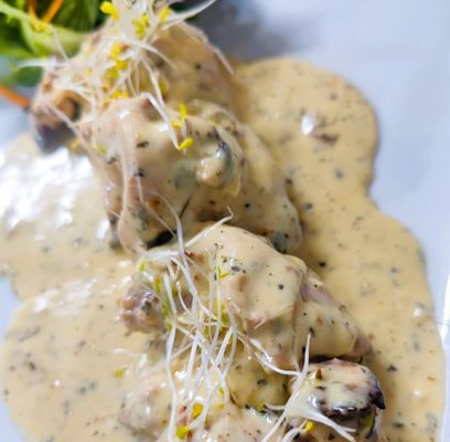 Chicken drumsticks marinated in fresh ginger, garlic, north Indian spices and hung curd and cooked to perfection in tandoor served with mint sauce.